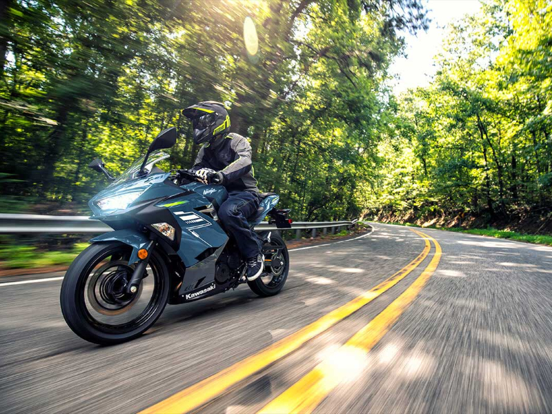 The Ninja® 400 sportbike offers the largest displacement in category at 399cc with the sophistication of twin-cylinder power. Approachable power, superb ergonomics and class-leading performance offer a smooth, manageable ride that's ideal for new riders while also alluring experienced riders. A low seat height and aggressive styling with LED headlights make the Ninja 400 the ideal choice for riders looking to enter the sport-riding scene.