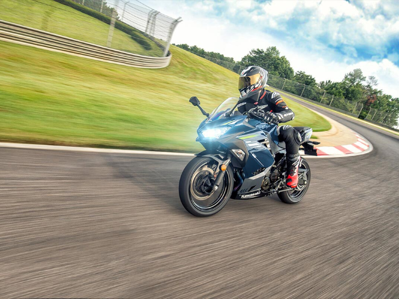 The Ninja® 400 sportbike offers the largest displacement in category at 399cc with the sophistication of twin-cylinder power. Approachable power, superb ergonomics and class-leading performance offer a smooth, manageable ride that's ideal for new riders while also alluring experienced riders. A low seat height and aggressive styling with LED headlights make the Ninja 400 the ideal choice for riders looking to enter the sport-riding scene.