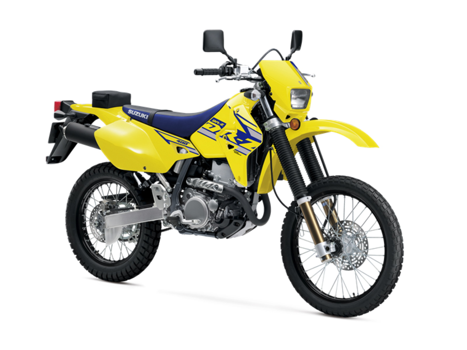 - Off-road inspired Suzuki Champion Yellow or Solid Black bodywork has daring contrasting graphics.