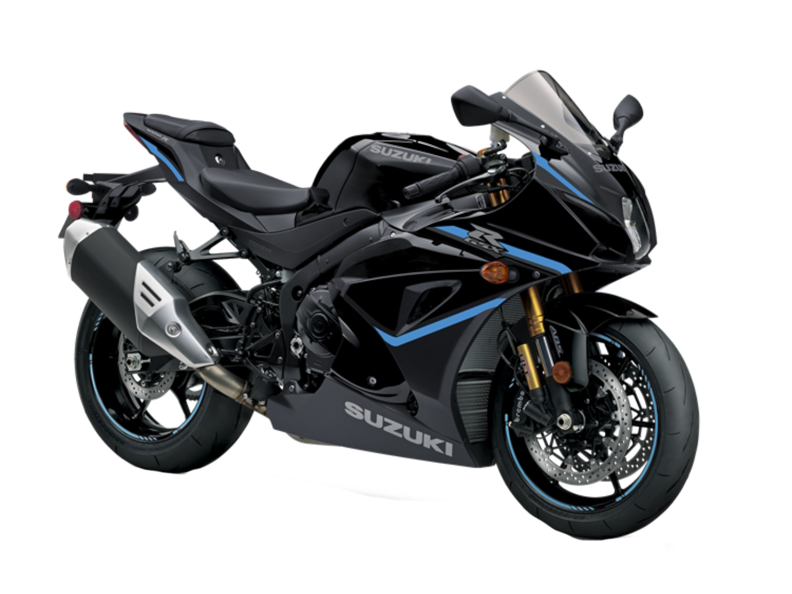 - The 2024 GSX-R1000R is available in a new Glass Matte Mechanical Gray paint scheme with dark red wheels or the popular Metallic Matte Black No. 2 and Glass Sparkle Black scheme with new, bright blue graphics on the fairing and on the black wheels. Both paint schemes are accented by gold-anodized suspension components.