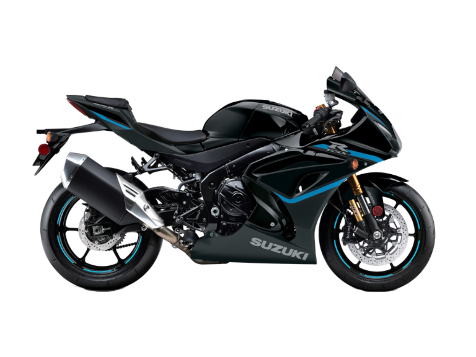 - The 2024 GSX-R1000R is available in a new Glass Matte Mechanical Gray paint scheme with dark red wheels or the popular Metallic Matte Black No. 2 and Glass Sparkle Black scheme with new, bright blue graphics on the fairing and on the black wheels. Both paint schemes are accented by gold-anodized suspension components.