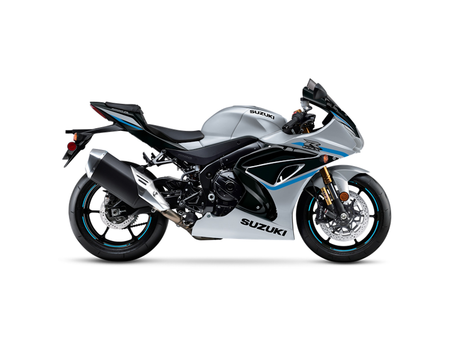 - The 2025 GSX-R1000R is available in a new Candy Daring Red / Glass Black paint scheme with dark red wheels or a stunning Metallic Matte Sword Silver scheme with bright blue graphics on the fairing and black wheels.
