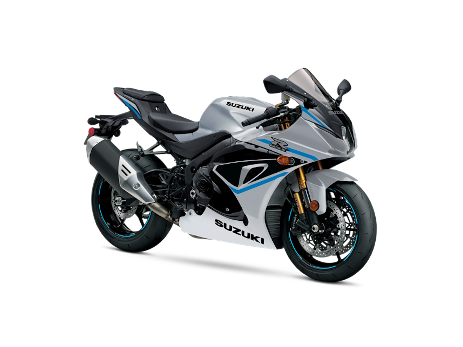 - The 2025 GSX-R1000R is available in a new Candy Daring Red / Glass Black paint scheme with dark red wheels or a stunning Metallic Matte Sword Silver scheme with bright blue graphics on the fairing and black wheels.