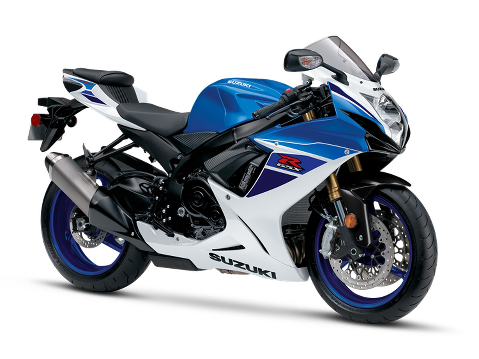 • The 2024 GSX-R750Z is available in a Pearl Brilliant White / Metallic Triton Blue scheme.