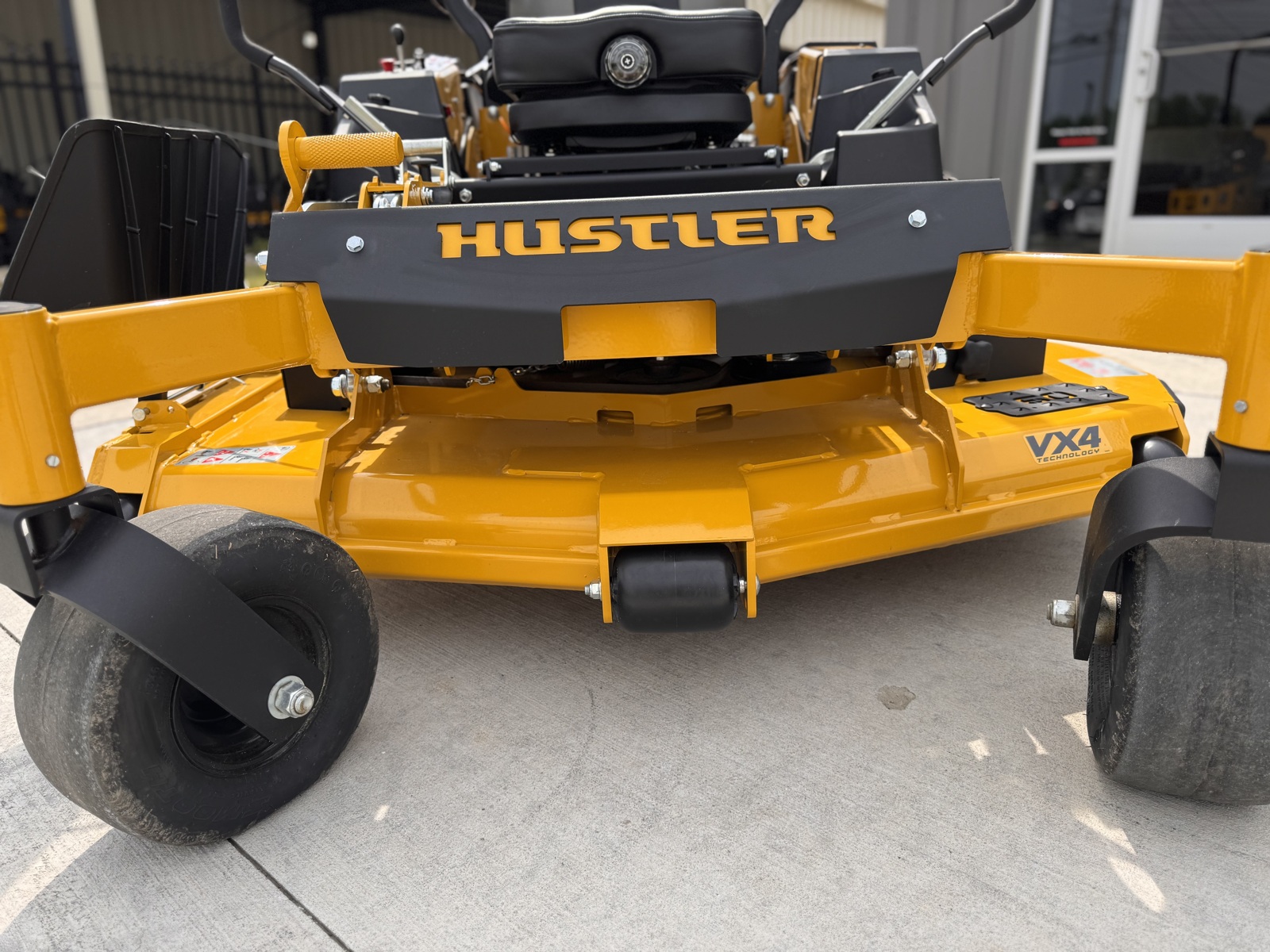 Features Hustler's VX4 Deck, Heavy-Duty Hydraulics.