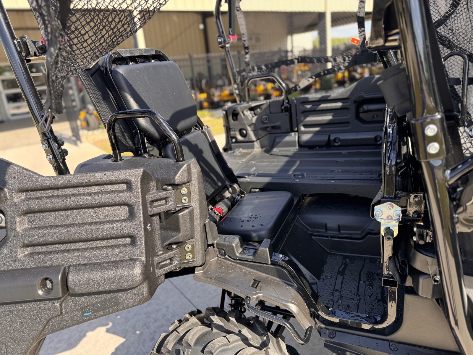Our preload rear shocks provide excellent handling, even when hauling heavy loads. The fully independent rear suspension has a dual-rate spring and 9.1 inches of travel, ensuring predictable steering even when the vehicle is loaded to its maximum capacity. - Disc brakes