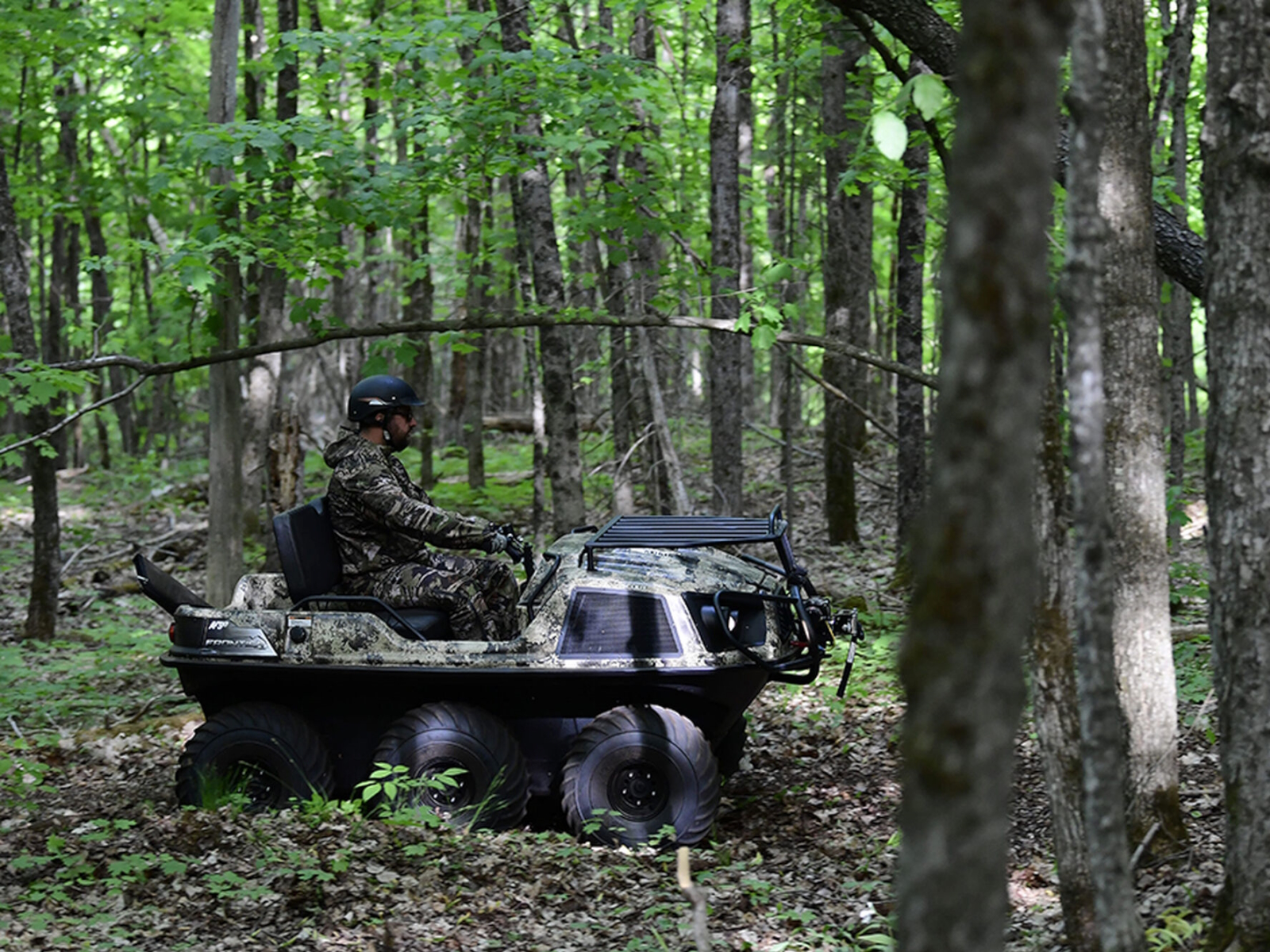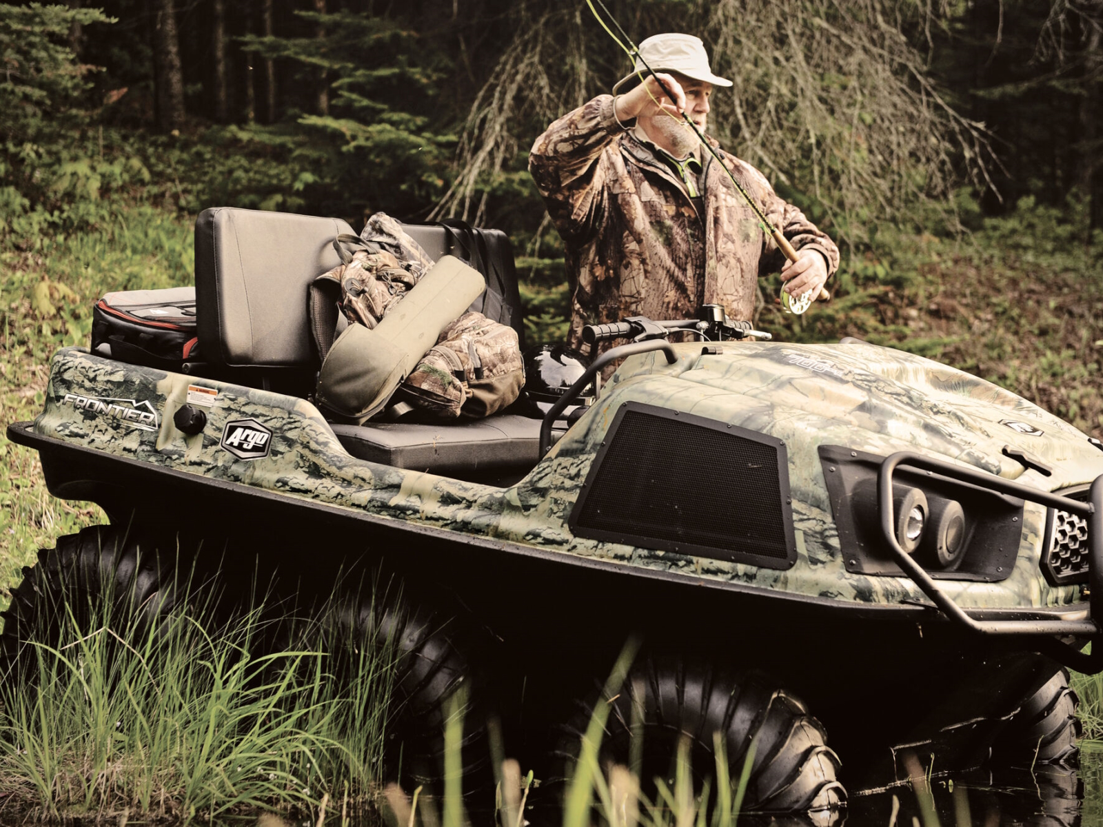 The front steel rack provides lots of room for gear, and the back seat provides lots of room for the hunters using that gear. The vehicle will get you past rivers, ponds and rough terrain with its amphibious capabilities and powerful, but quiet V-Twin engine. And it’s all finished with TrueTimber® Prairie camo, making it the perfect sidekick to all your hunting stories.