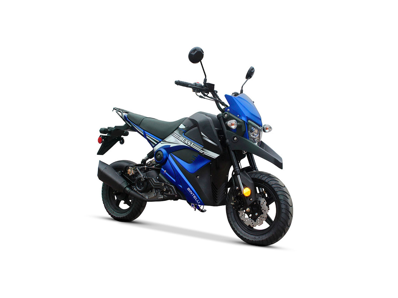 Unleash the Beast! The Bintelli Beast is the newest edition to the Bintelli family. It has the heart of a motorcycle and the soul of a scooter! The Bintelli Beast moped for sale includes a color-changing digital speedometer and a sport sounding exhaust. It comes standard with a 49cc automatic engine, perfect for the entry motorcycle rider! As with our other scooters, the Beast comes fully loaded with many upgraded features such as Duro Tires, Yuasa Battery, NGK Spark Plug, Gates Belt, Halogen Headlight, Stainless Steel exterior hardware, and a 1-year warrant.