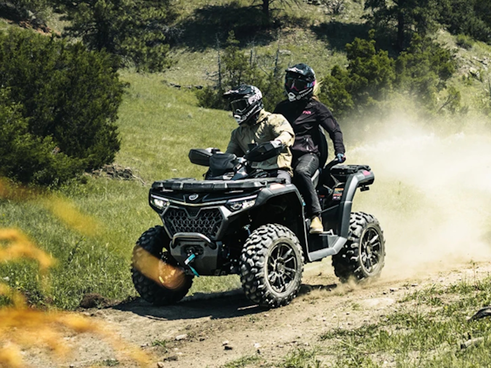 The CFORCE 800 Touring has proven itself to riders across the country—from rugged two-up trail rides to serious backcountry hunts to daily workhorse duty. And no surprise—it delivers more standard than anything in its class. More horsepower. More tech. More control. More comfort. At its core: a 70 hp V-Twin, ride-by-wire throttle, and OmniDrive™ CVT for seamless, confident power. A 58” wheelbase, 11.4” of clearance, and 9” of suspension travel keep the ride smooth—even when the terrain isn’t. Add a full digital cockpit with Bluetooth®, downhill assist, and four-mode EPS, and you’ve got a machine that dials into any ride, anywhere. And your passenger? They’re not just along for the ride—they’re along for the experience. This is premium two-up riding, standard.