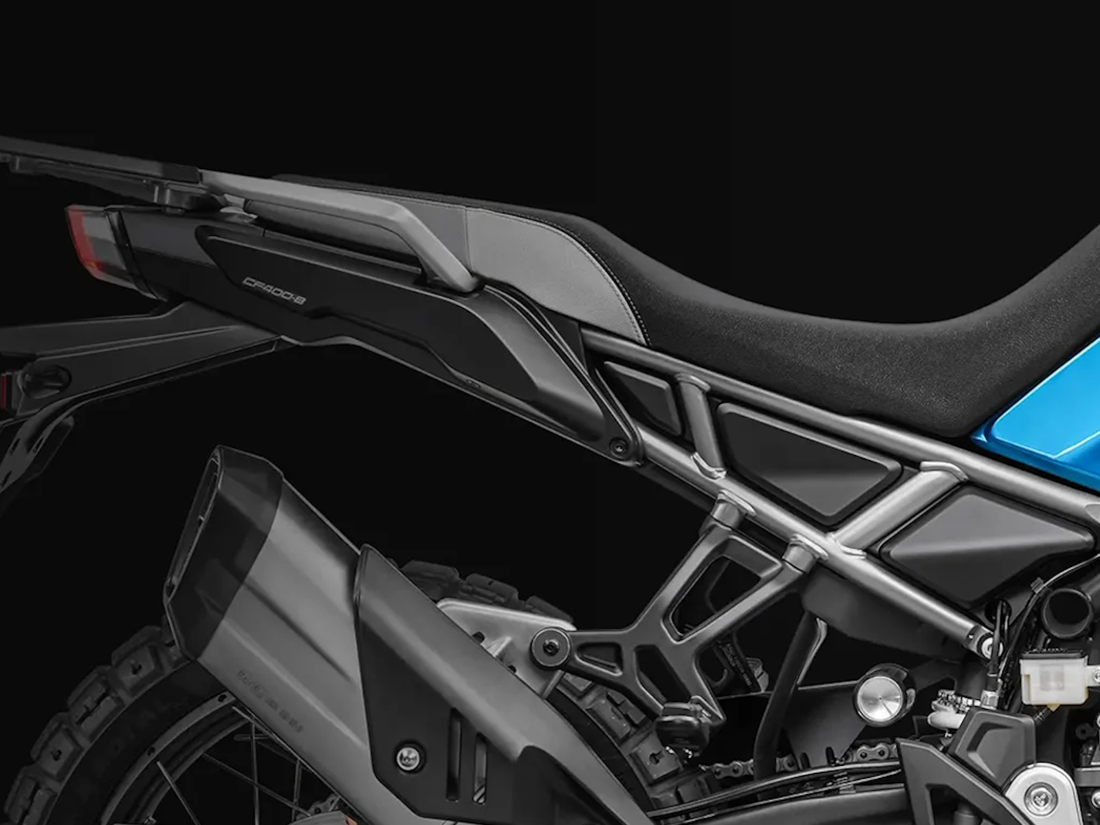 - A high-tensile steel frame with a long swingarm delivers stability, feel, and traction across changing terrain. The reinforced rear subframe is built to carry luggage and load. Ground clearance and centered weight keep the ride balanced and composed when the trail turns technical.
