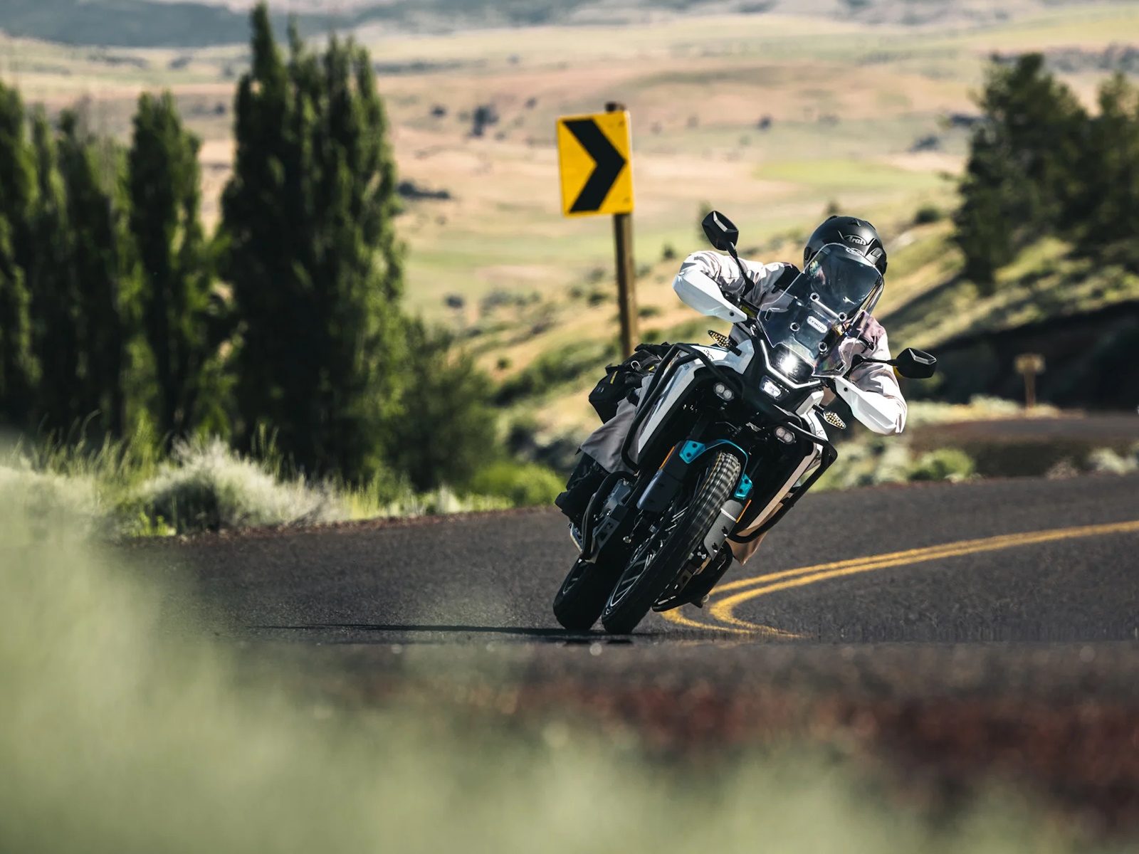 Some would even say it’s a unicorn. Under the tank sings a 270° parallel twin—chosen not for parallel twin bragging rights, but for the torque curve real-world ADV riding demands. Twin counterbalancers keep it smooth without muting the feel. The fully adjustable KYB suspension with 200mm of travel interprets the terrain. Tubeless spoke wheels, a Chromoly steel frame, and plenty of ground clearance round out the platform. J.Juan brakes and one-touch, switchable Bosch® ABS instill confidence on all surfaces. And at 386 pounds dry, it’s one of the only ADV bikes that feels more like a riding partner than a machine.