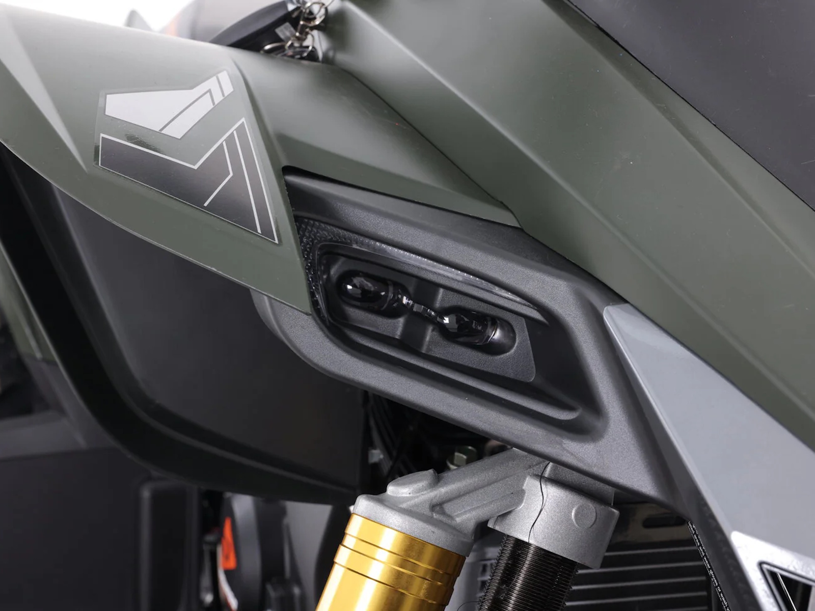 It takes only a quick glance at the Daytona 250FI to realize it’s designed to rip up the trails at high speed. The rakish front end flows into a mini wind deflector and color-matched handguards. Squinty-eyed LED headlights look aggressive and provide excellent illumination, and a digital instrument panel provides all the data (speed, gear position, rpm, fuel level) they need to keep roosting even after dark.