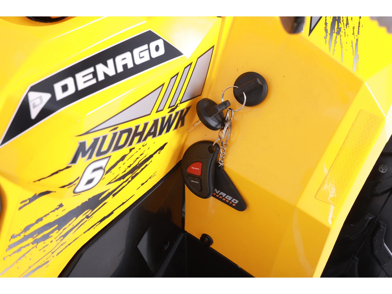The Mudhawk 6 comes with key fob that includes a unique wireless engine shut-off switch to give parents the ability to disable the vehicle if kids misbehave. The throttle limiter lets adults control the vehicle’s speed to match each rider’s ability.