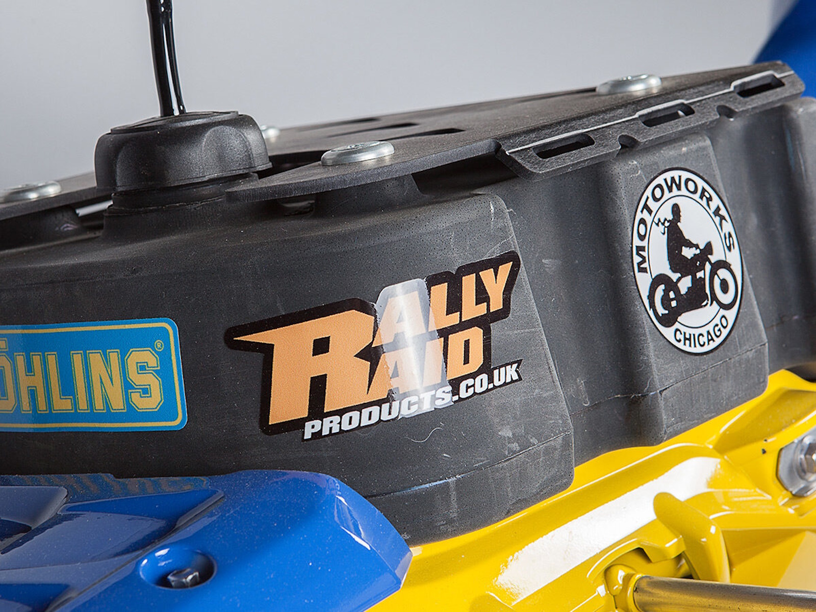The bike is modified for this endeavor with Ohlins® suspension, enduro-capacity tank from Safari Tank Australia, Rally Raid rear fuel tank, navigation panel, PIAA® lighting, AltRider armor, Arrow exhaust, and Woody's Superlaced wheels.