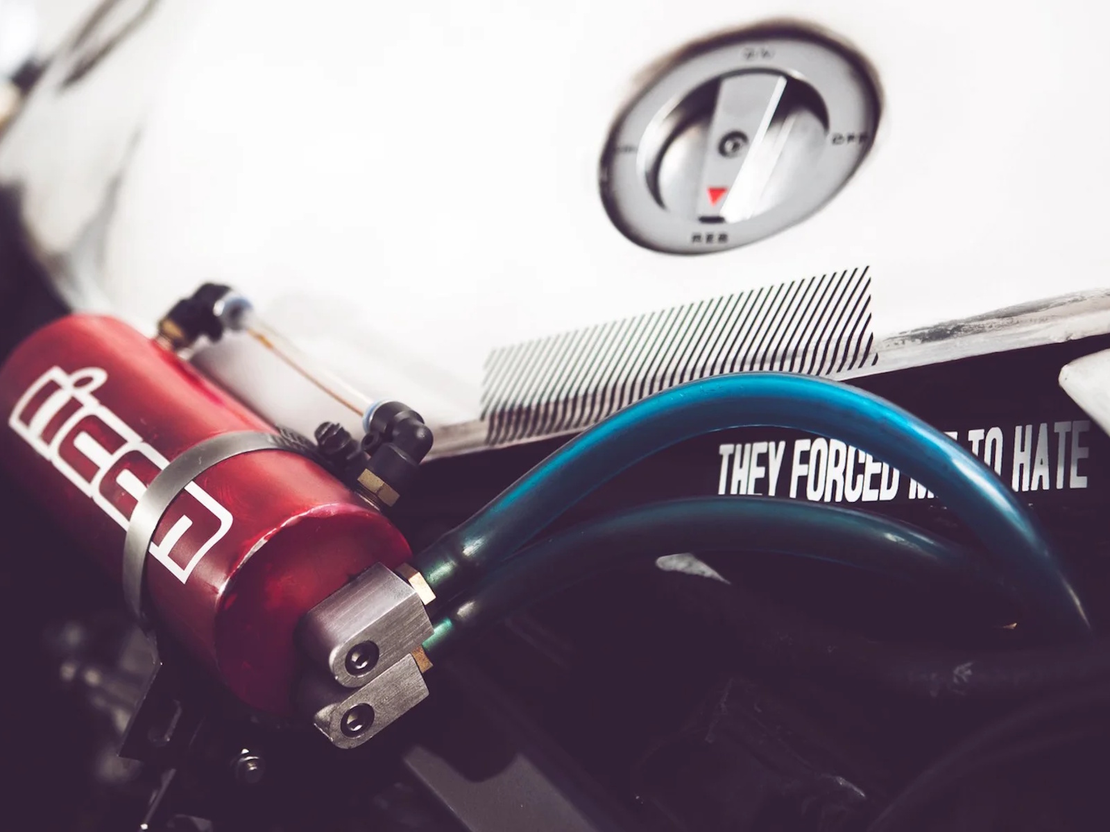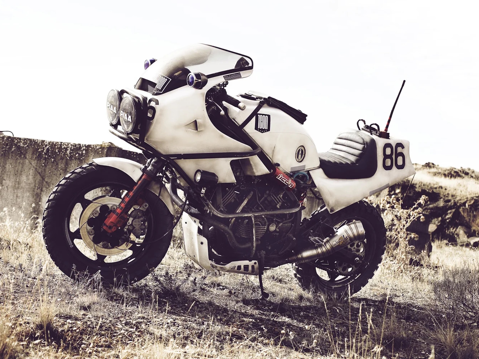 With the weight of a main battle-tank and the fuel capacity of a mid-size sedan, the Bastard strode into the wasteland with theatric aplomb. However you chose to describe her – stout, thick, big-boned – there was no denying the VF1000R was one seriously heavy motorcycle. Far too heavy for the track, which is ironically the exact use for which she was bred for. Drop out axles, dual spot headlights, and carbon fiber fairings all proclaimed Bold’Or. Unfortunately the steel perimeter frame, dense motor, and modular wheels all said buffet line.