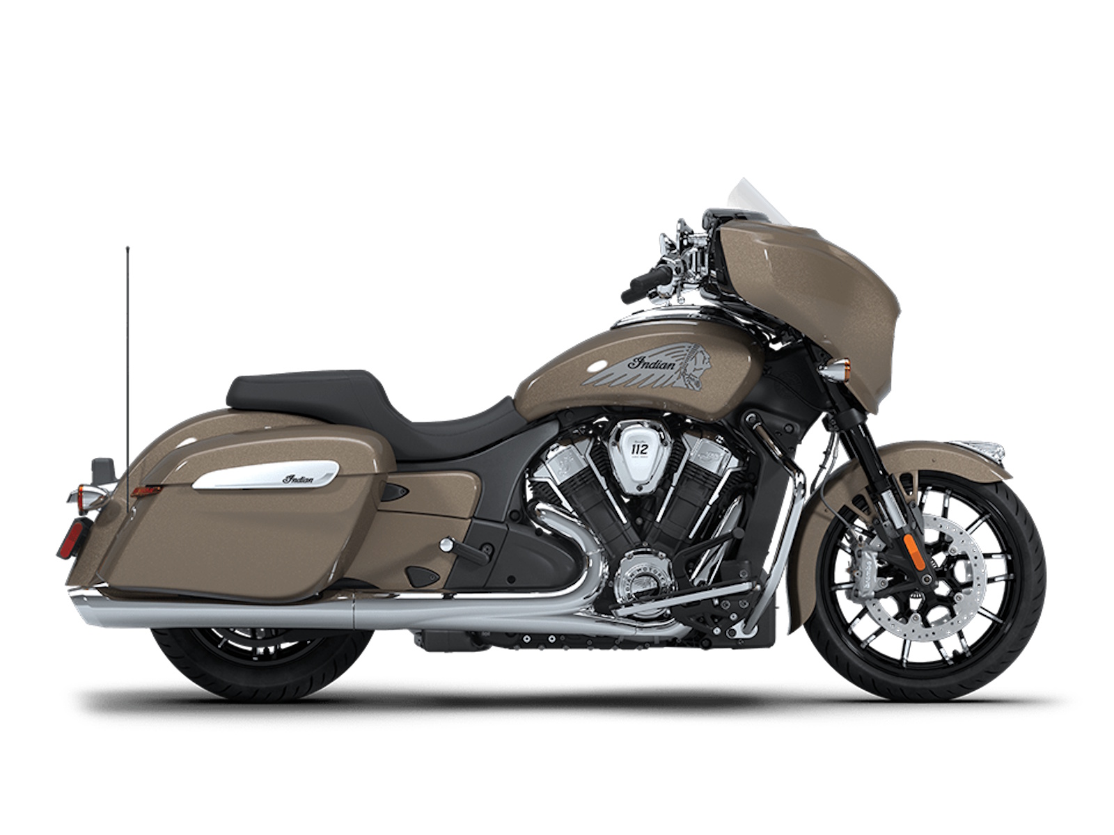 Find specifications below for the 2026 Indian Chieftain PowerPlus Limited with 112 motorcycle. Specs include displacement, engine type, torque, fuel capacity, seat height, wheelbase, height, weight, length, brakes, suspension, gauges, color options and standard equipment.