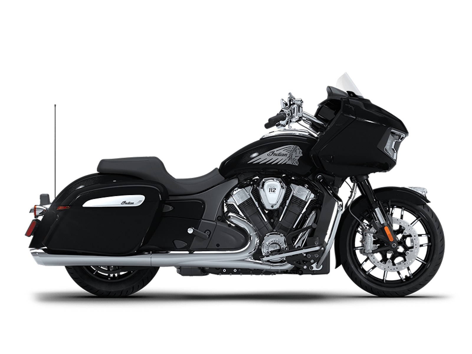 Find specifications below for the 2026 Indian Challenger Limited with 112 motorcycle. Specs include displacement, engine type, torque, fuel capacity, seat height, wheelbase, height, weight, length, brakes, suspension, gauges, color options and standard equipment.