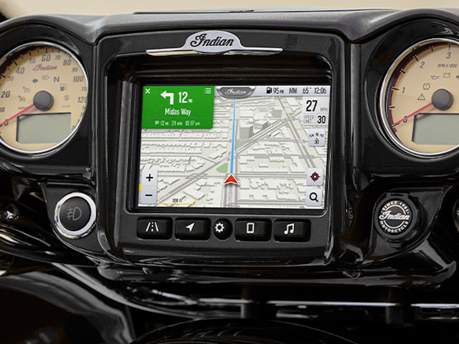 - Integrated into the dash, the 7" Display, powered by RIDE COMMAND, offers GPS navigation, Apple CarPlay®, Bluetooth® connection, and other ride-enhancing features for effortless cruising. Go beyond the ride and elevate ownership with RIDE COMMAND+ connected technology with features like Account Sync and more.