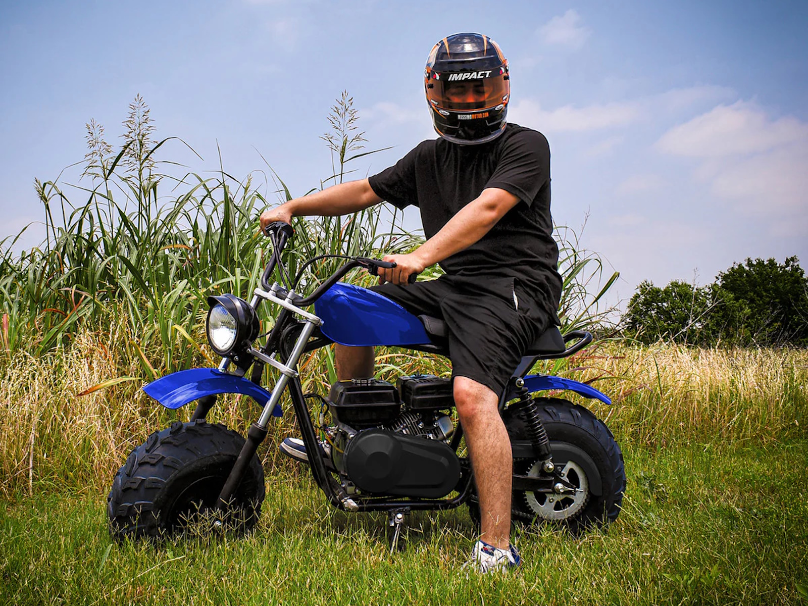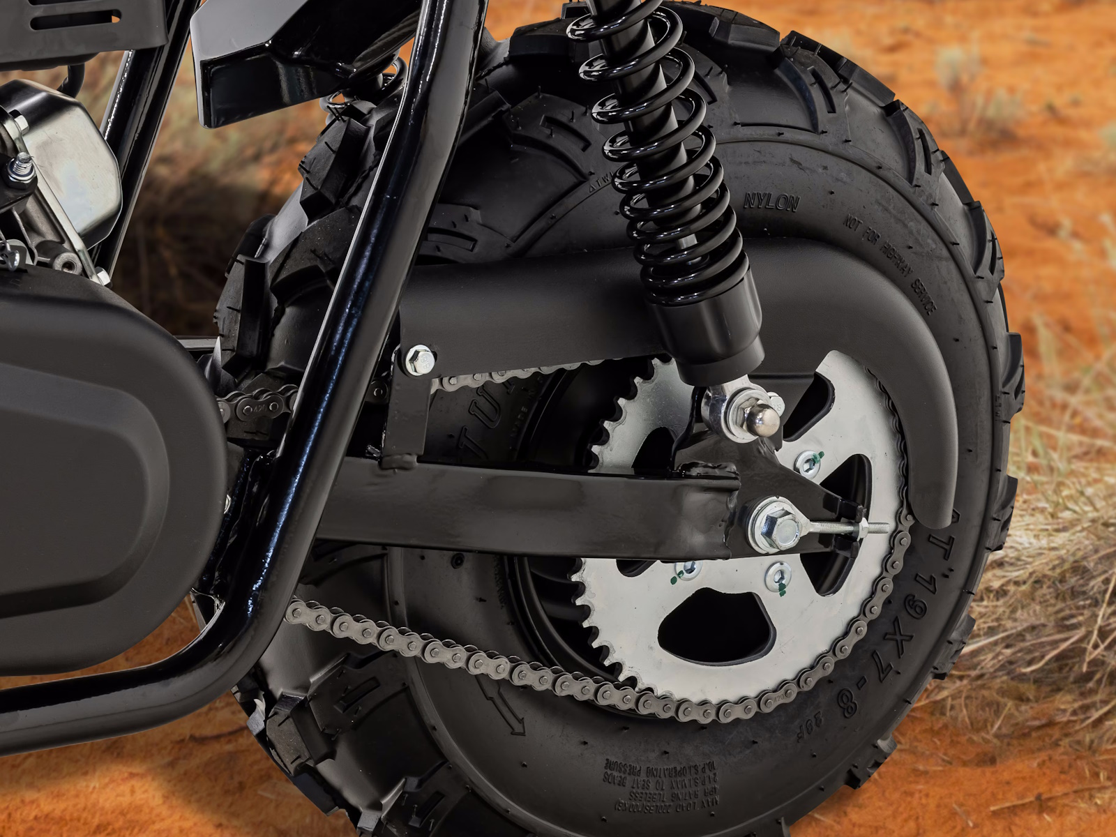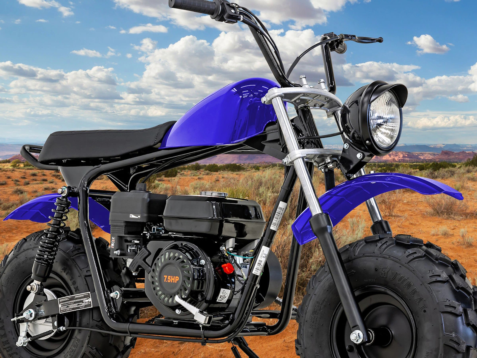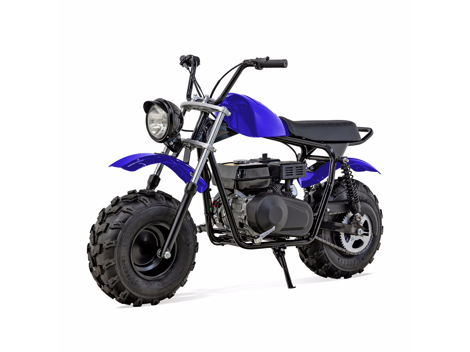 Get ready for off-road fun with the Massimo 200S Mini Bike, a modern classic built for adventure. It’s powered by a rugged and reliable 196cc, 7.5 HP engine and features a smooth dual-shock rear suspension for a comfortable ride on tough trails. This mini bike boasts super-wide 19-inch all-terrain tires that provide excellent grip and stability on dirt, grass, and pavement. With its low seat height, easy pull-start, and a faux gas tank for convenient storage, the 200S is the perfect choice for riders seeking a simple, durable, and thrilling off-road experience.