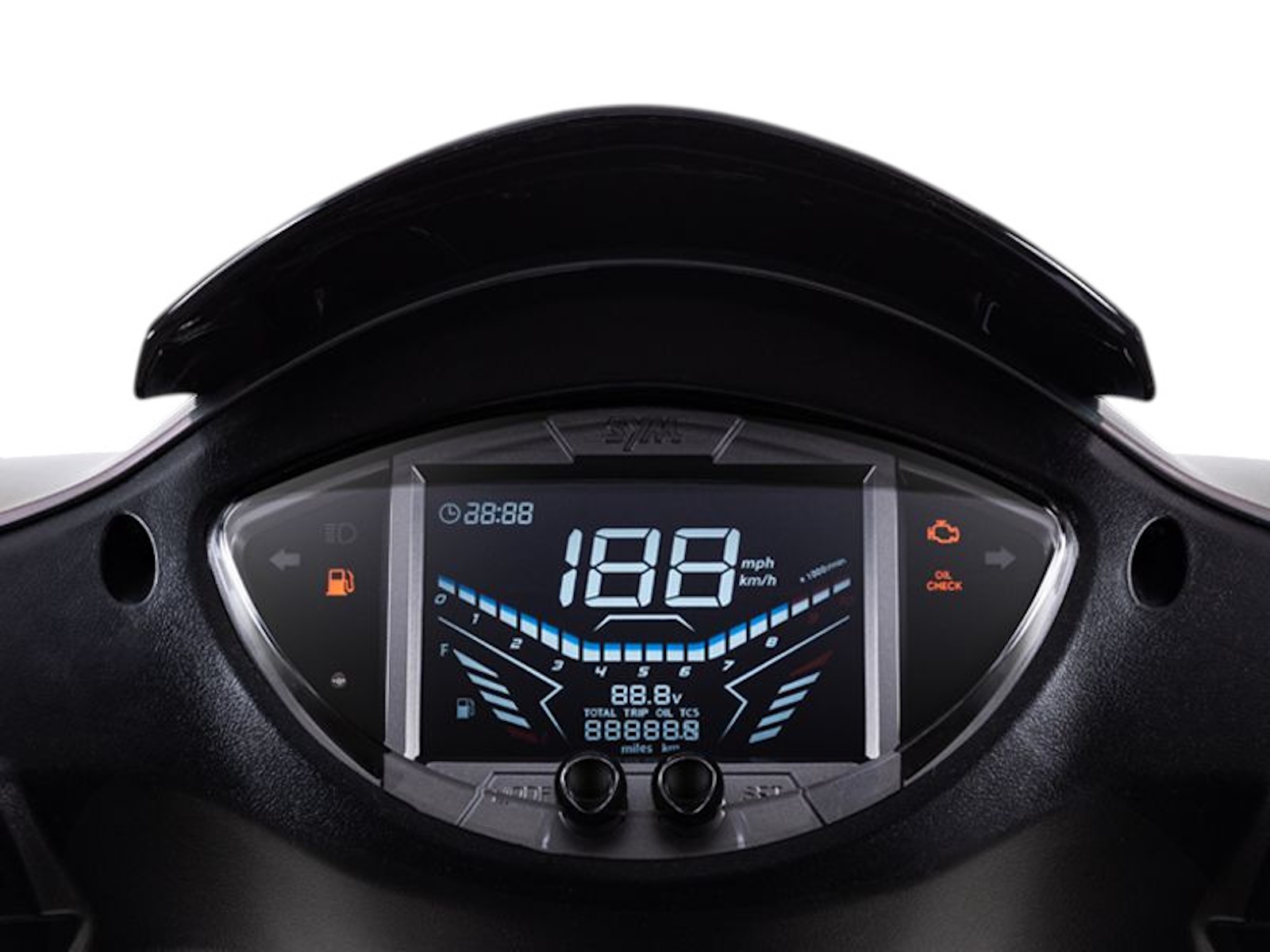 The upgraded instrument cluster enhances readability and user experience, while seamlessly matching the modern and dynamic look of SYMPHONY SR.