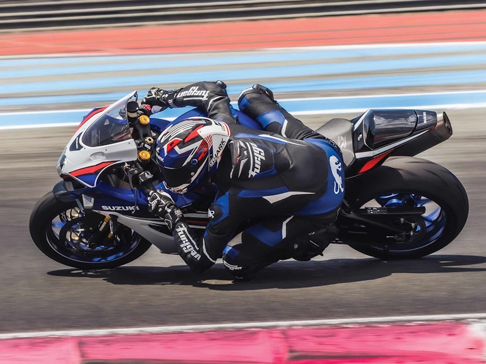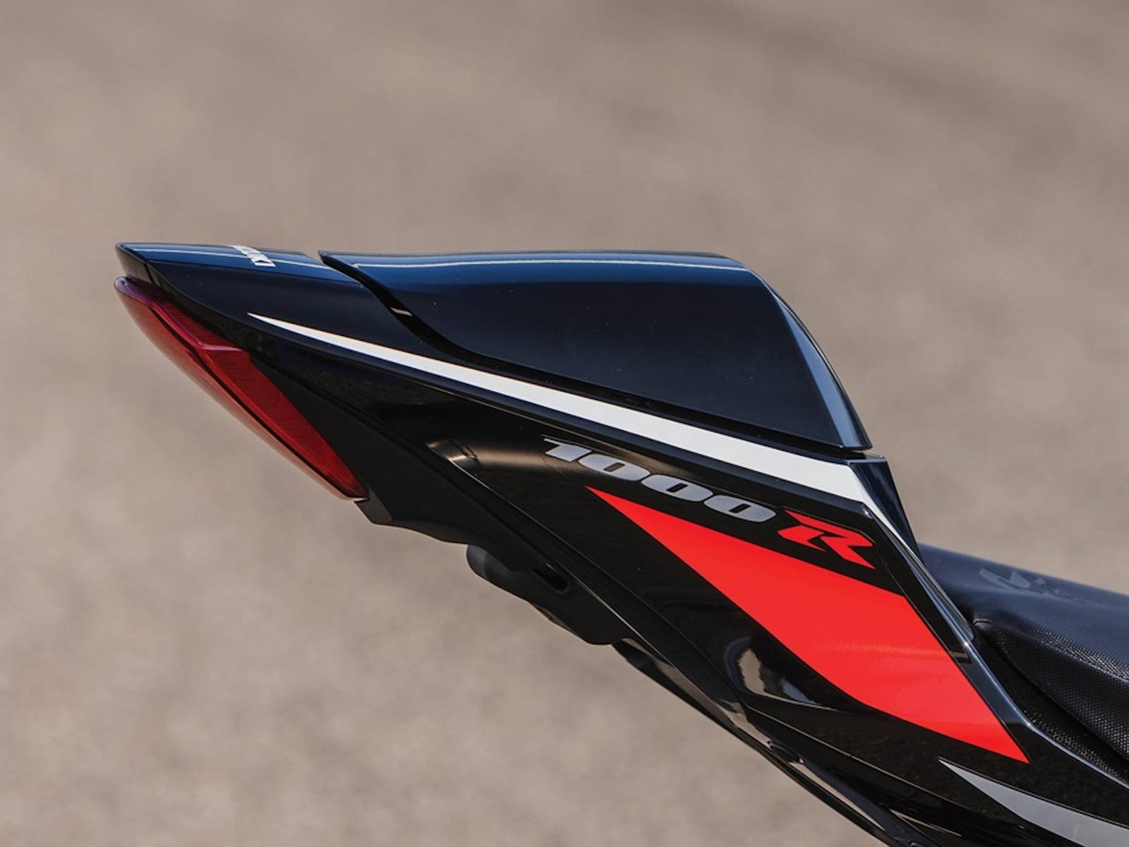 - The GSX-R logo is embossed into the rear section of the rider’s seat.