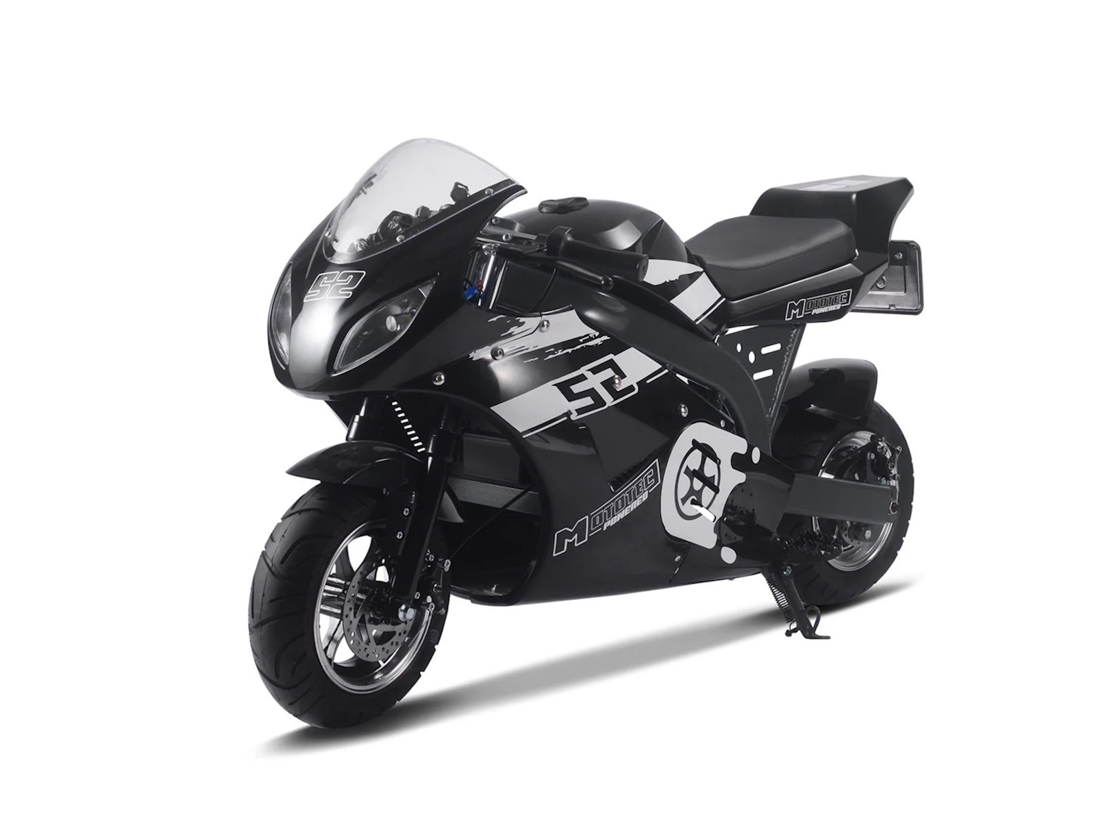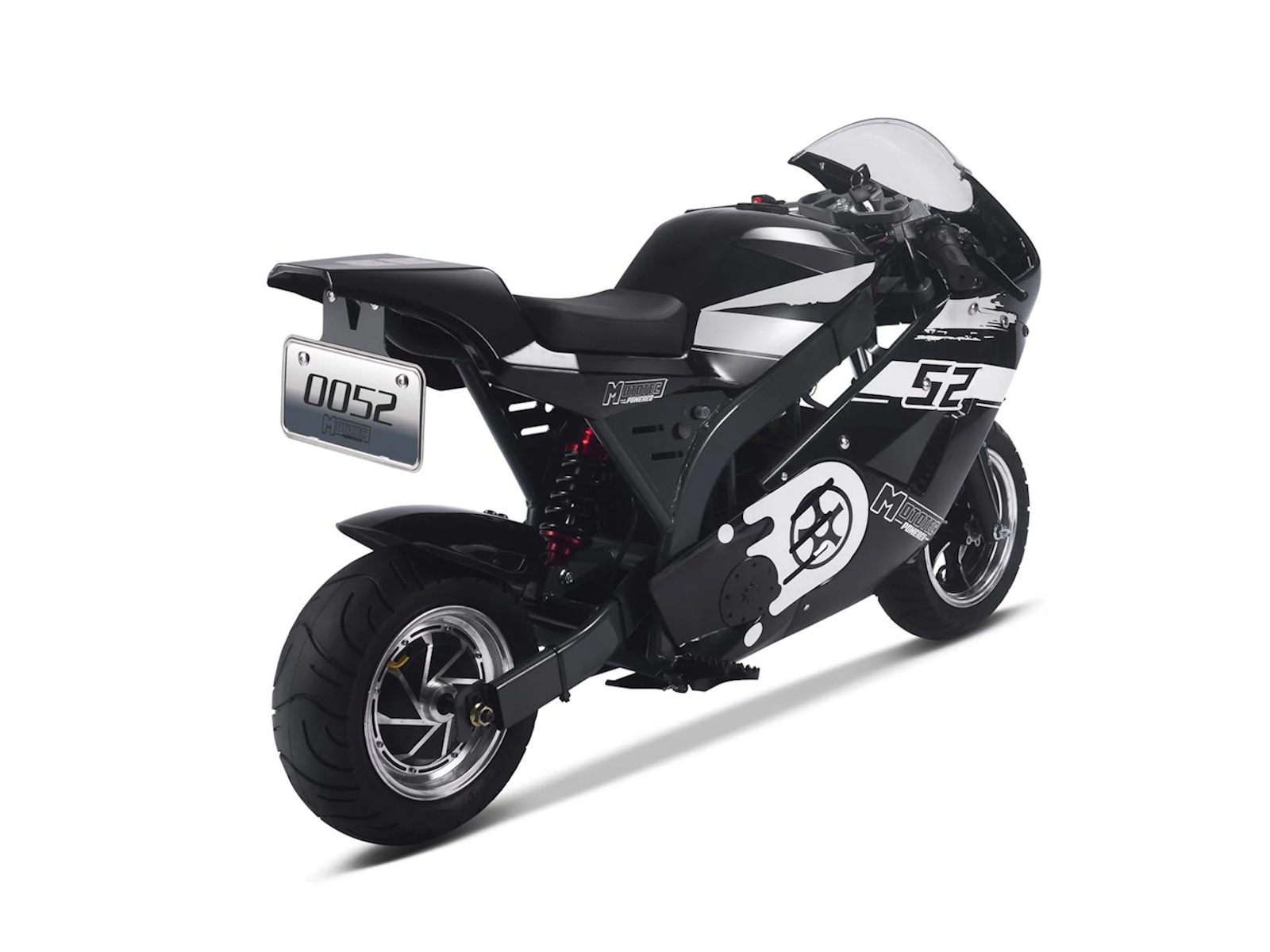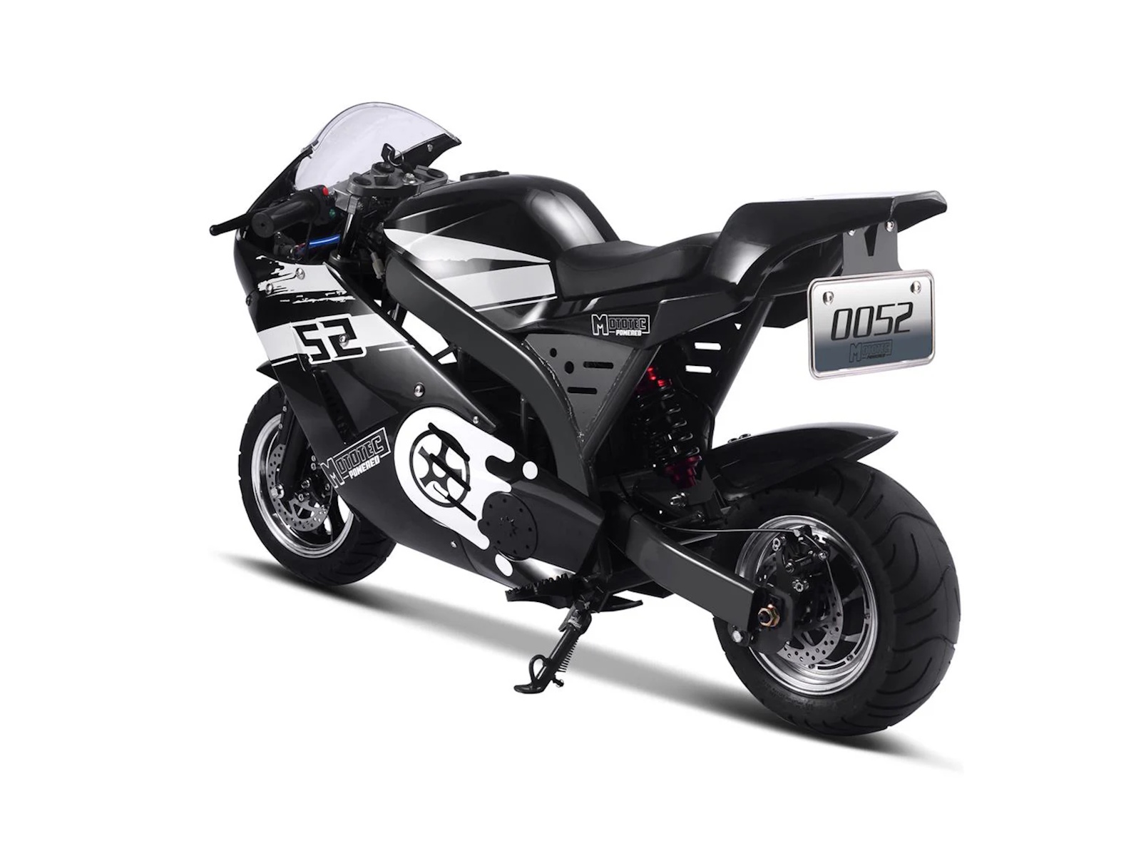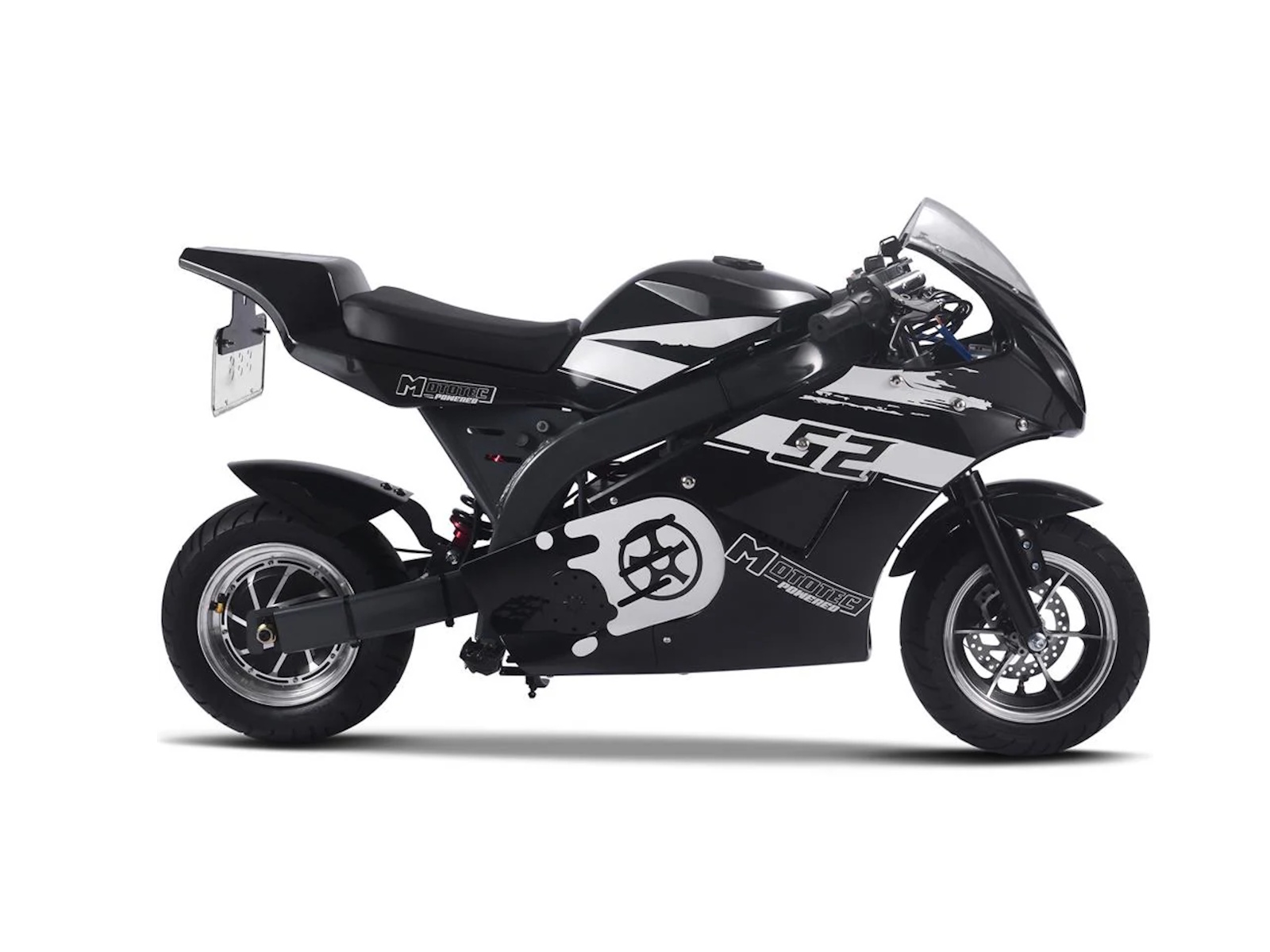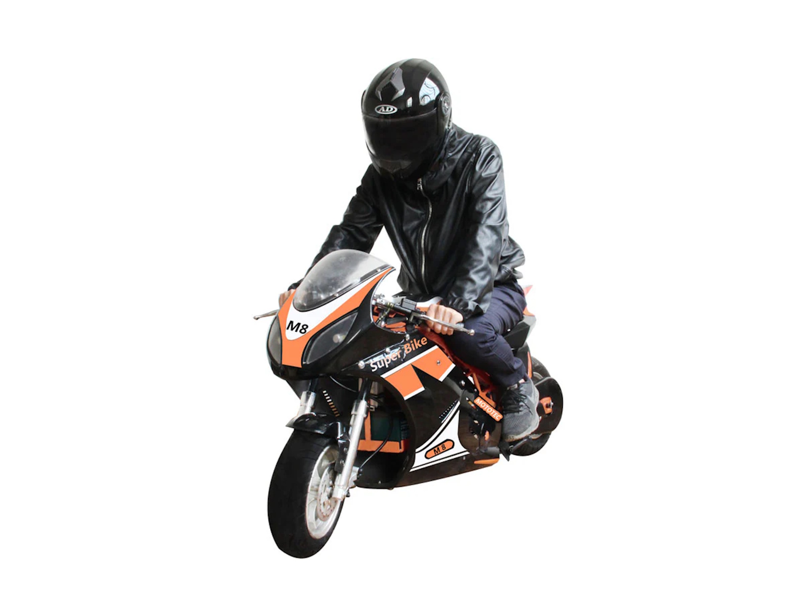 Experience the thrilling power of the Venom M8 Electric Super Pocket Bike! Bigger than a pocket bike but still small enough for convenience, this reliable electric bike has a brushless motor for fast and smooth acceleration. Feel the durable design and 8" tires under you as you ride with confidence and safety. Go wild on the open road with its leather padded seat, kick stand, half twist throttle for extra security, key start, front and rear suspension, and large tires complete with front and rear hydraulic disc brakes. Adventure awaits!